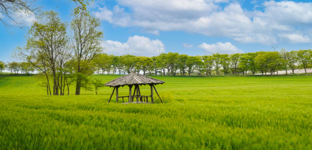 중순 봄 ( 4 월~5월) 보리가 최고 높이 에 도달하여 바람에 우아하게 흔들리는 두껍고 생생한 녹색 바다를 형성합니다. 늦은 봄 ( 5 월 ~ 6 월 ) 보리가 자라기 시작하여 녹색 에서 황금빛 으로 바뀌면서 여름 의 모습 을 보여 줍니다 .