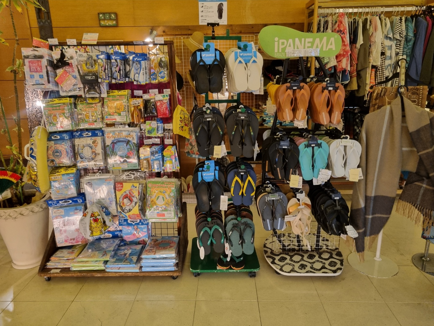 카운터 옆에는 슬리퍼랑 물놀이용품이 판매를 합니다.