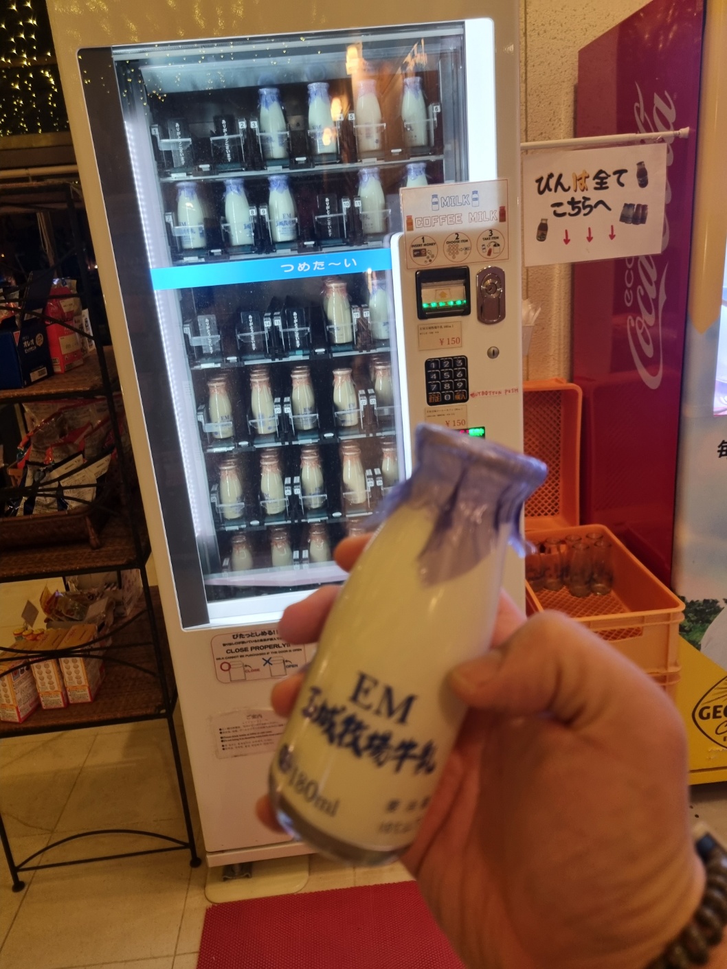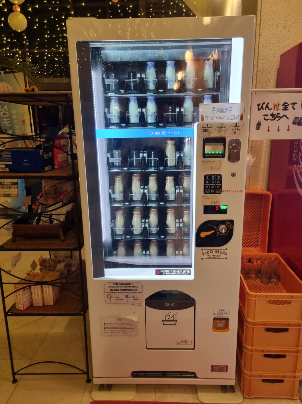 휴게실 입구에는 우유자판기가 있다. 일반우유와 커피우유가 있는데 가격은 150엔 ,,