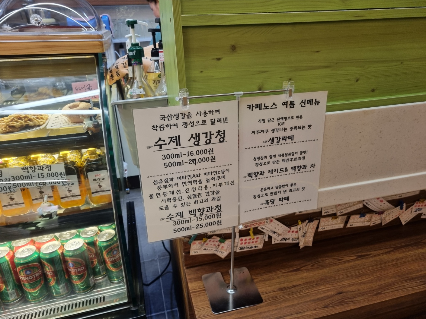 여기 수제 생강청도 판매하고 음료도 저렴하게 구매한다. 가성비도 좋고, 등산후 식후경도 하기 좋은 곳입니다.