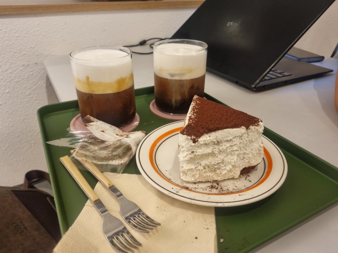 아인슈패너 2개와 티라미슈케이크를 주문했다.