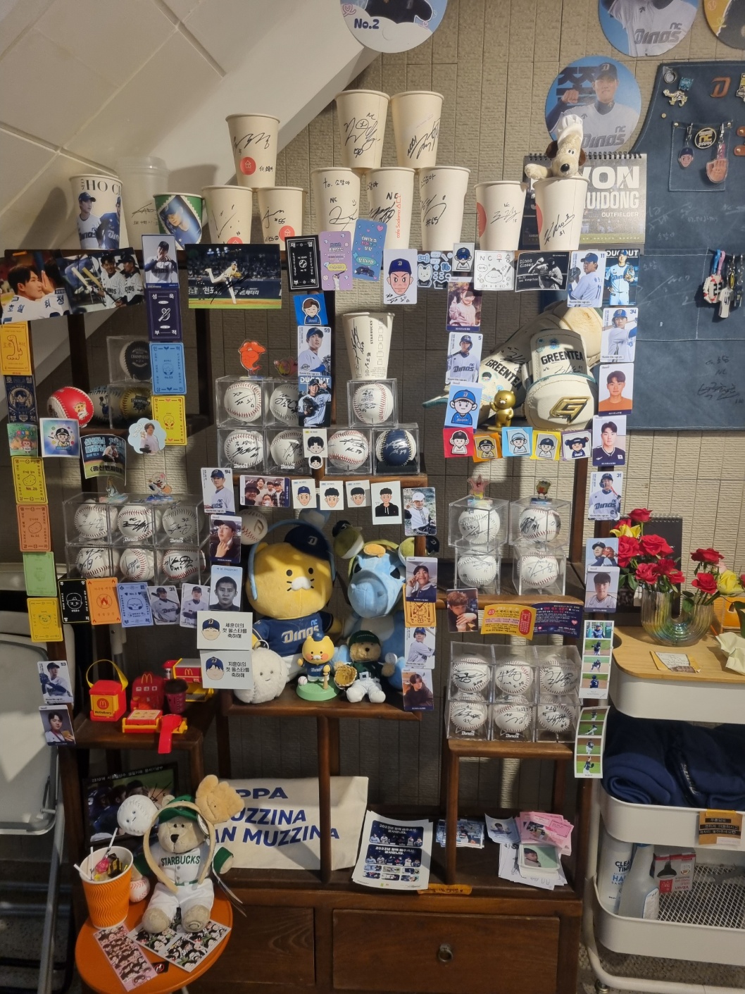 1층 입구로 들어와보니 nc다이노스 야구소품들과 카운터가 있다.