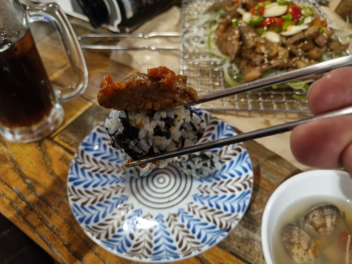 주먹밥과 돼지갈비와 같이 먹으니 조합이 최고 잘맞음 ㅋㅋㅋㅋ