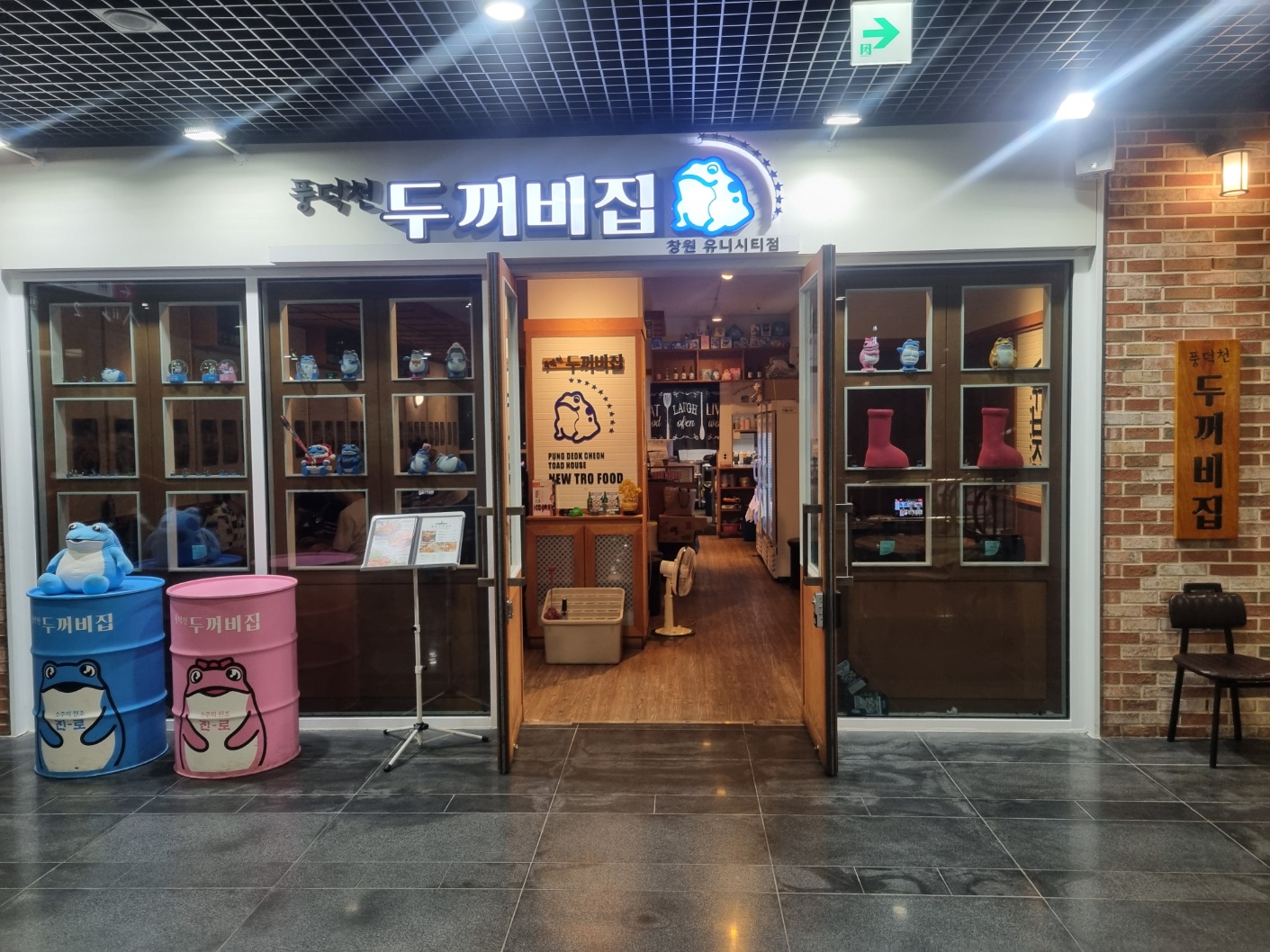뉴트로 감성을 겸비하였고, 진로마크의 두꺼비를 바탕으로 한식술집으로 인테리어르 하였고 , 양푼떡볶이, 양푼짬뽕탕, 조개탕, 숯불 양념구이가 대표적인 메뉴입니다. 친구랑 단체모임때 이용하기 좋은 곳입니다.