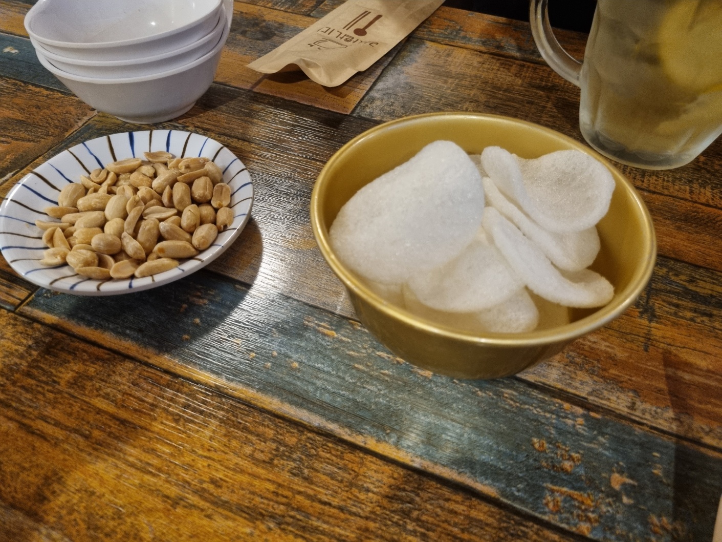 메뉴 나오기 전에 알새우칩과 땅콩이 나왓다.