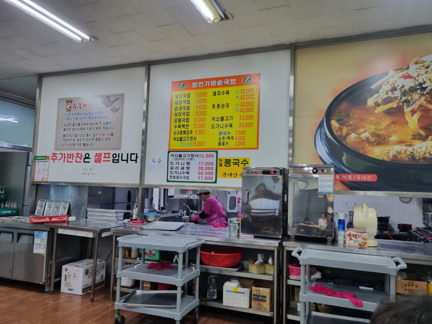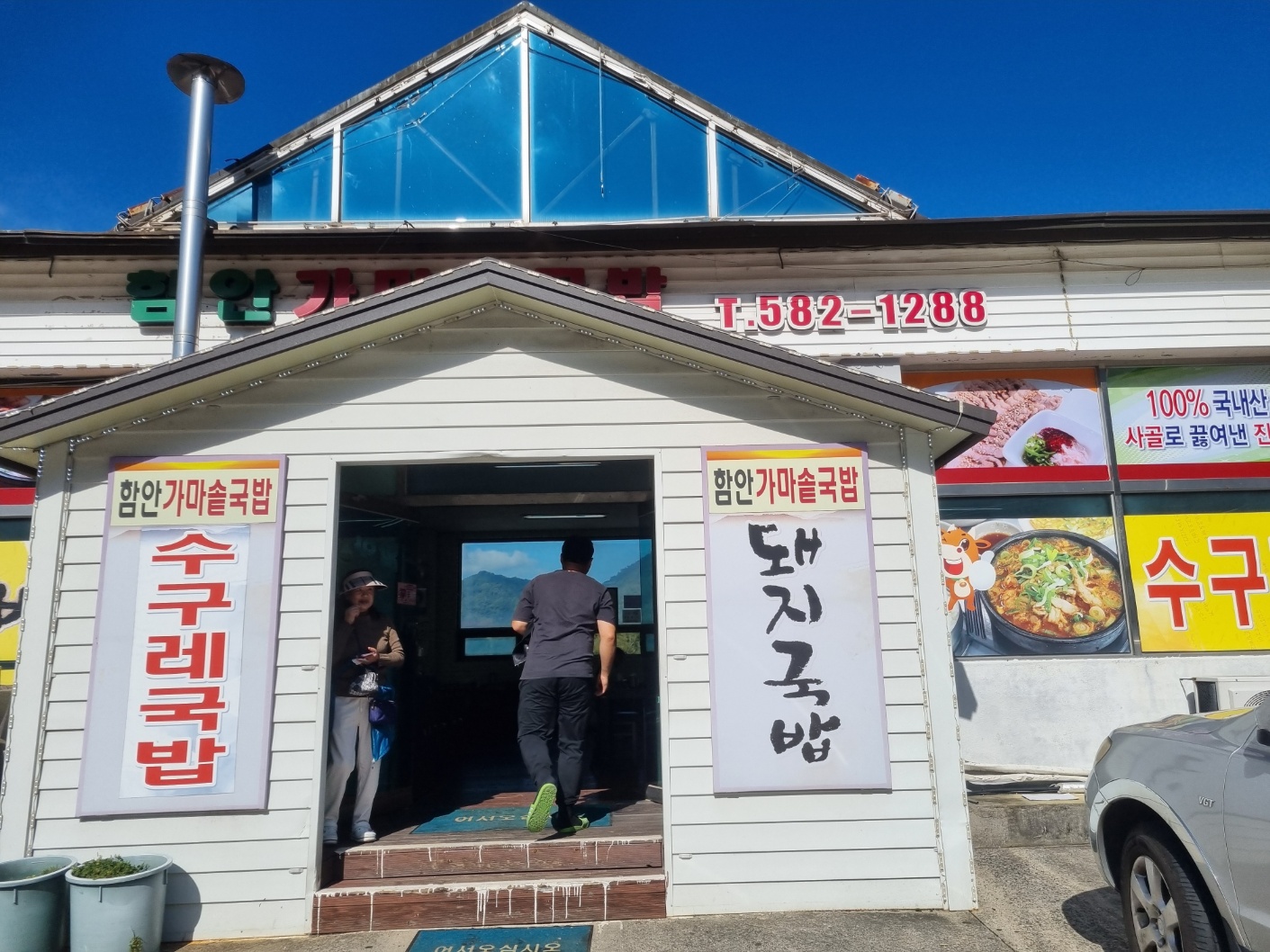 가게 앞에 주차를 하고 나서 함안 가마솥국밥 입구로 들어왔다.