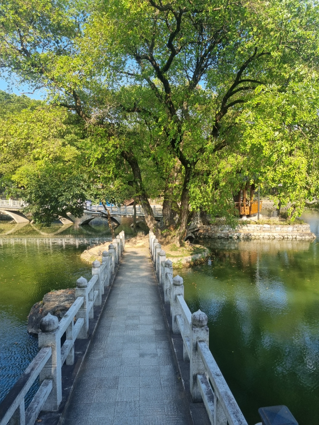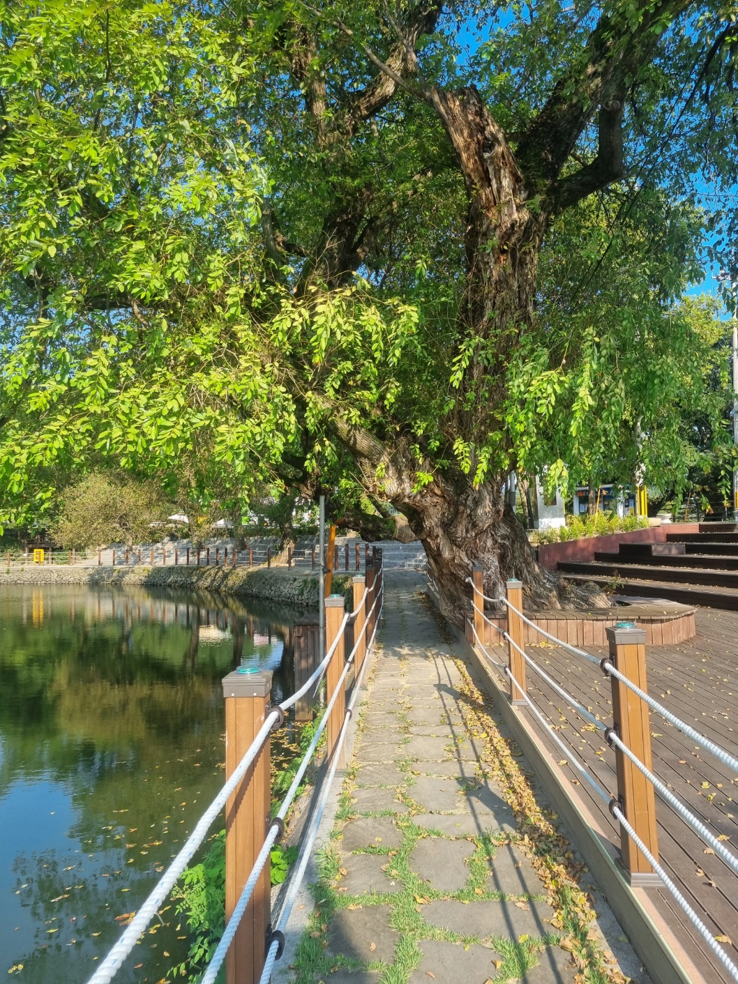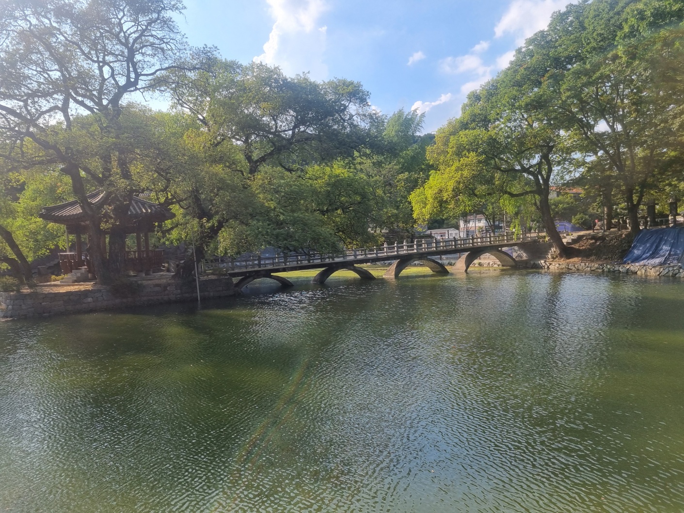 무진정 연못을 둘레로 산책길이 이어져 있다.