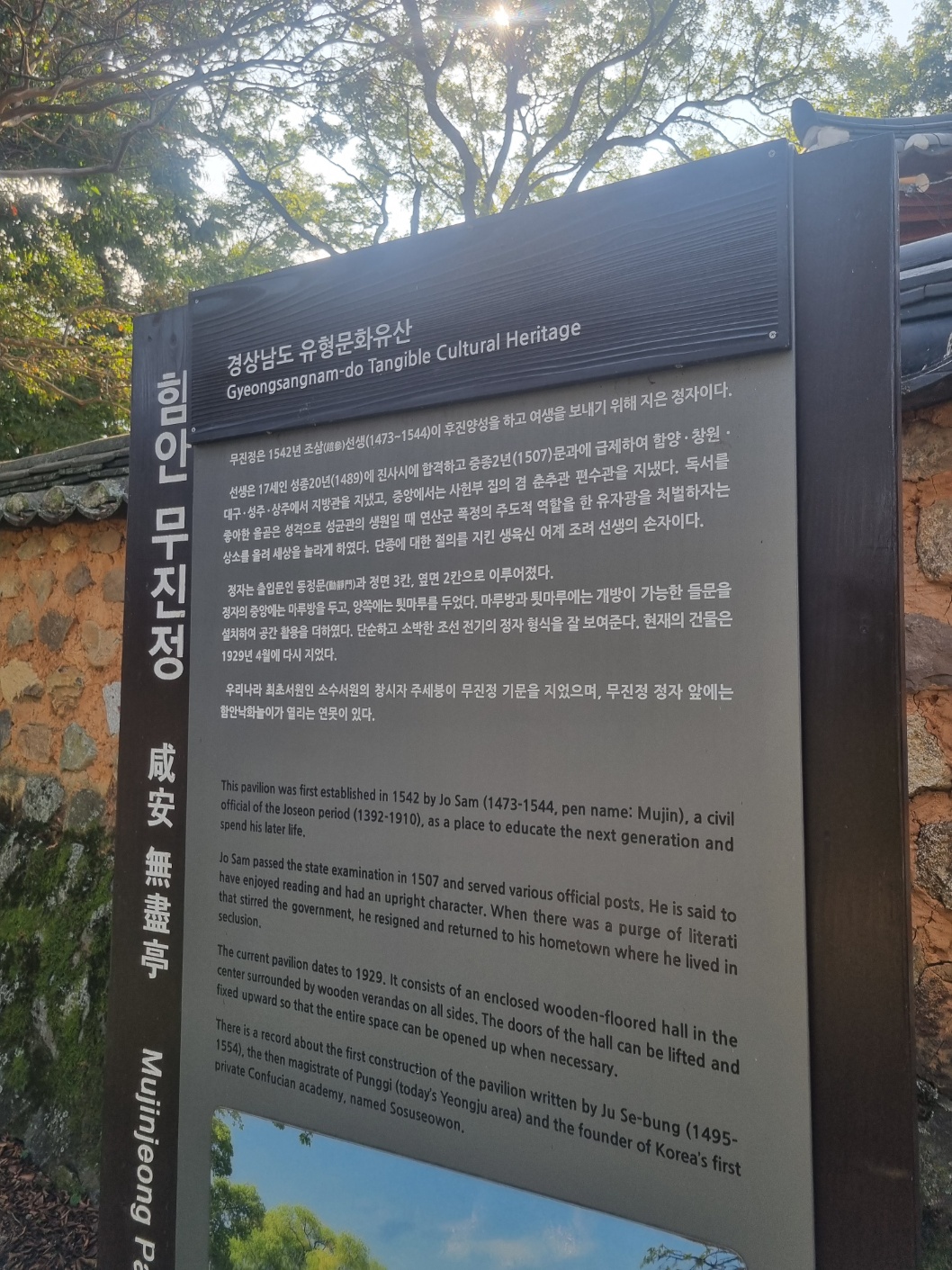 무진정은 주세붕선생님과 조삼선생님의 학문을 갈고 닦은 곳이기도 하다.