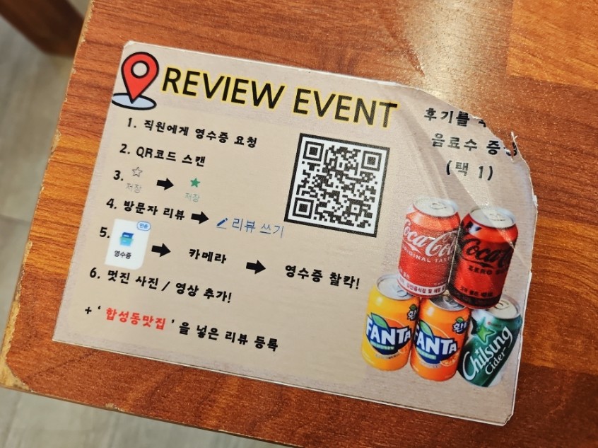 여기 영수증 리뷰 작성하시면 음료수를 드립니다.