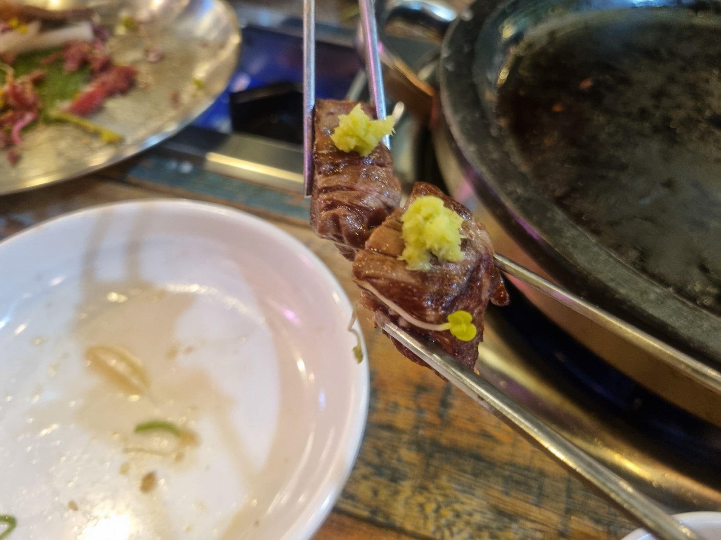 소고기 겨자에 찍어서 먹으니,,,