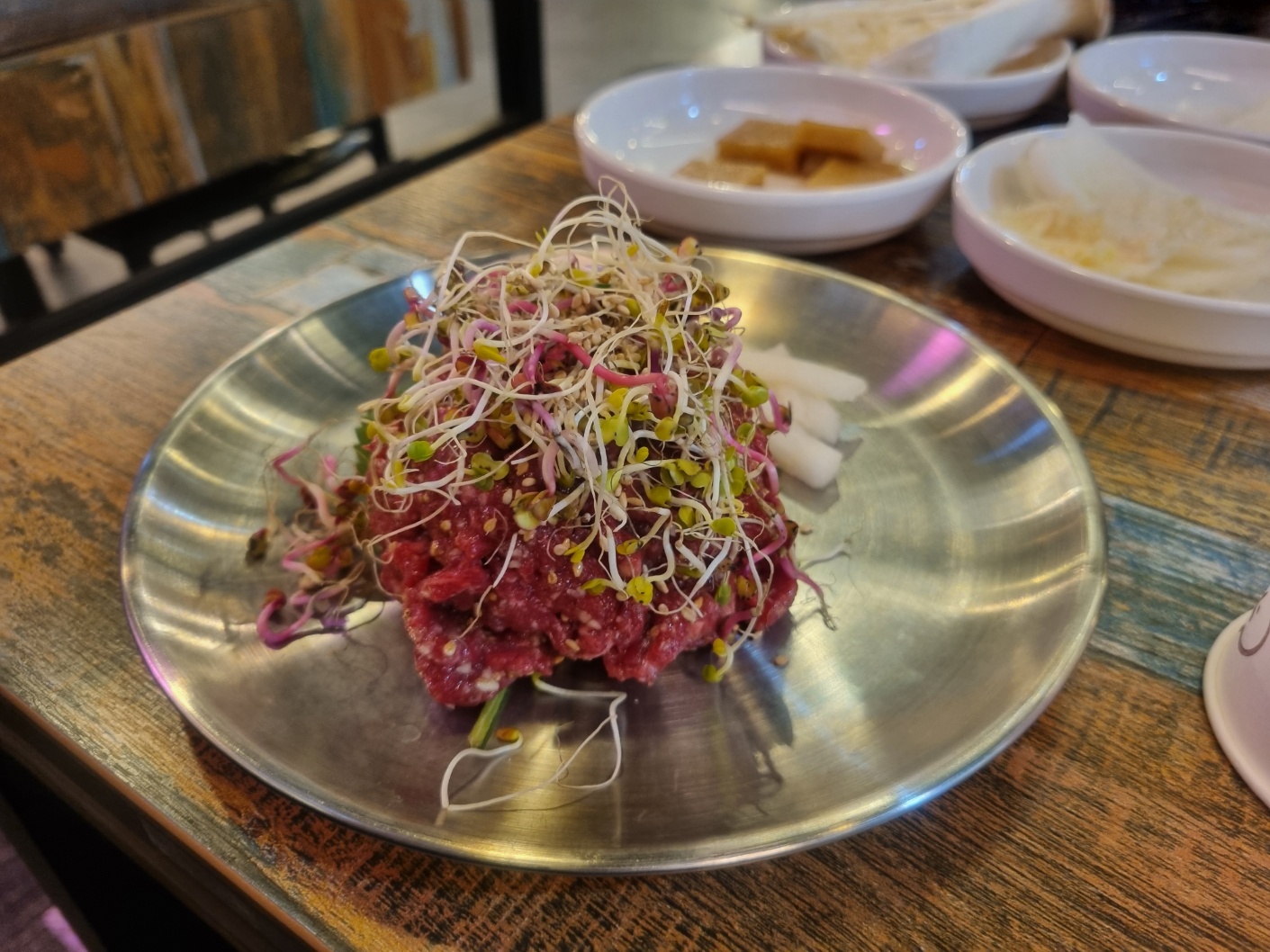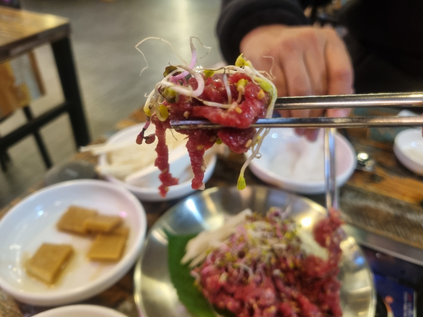 육회를 먹어보니 육즙이 부드럽고 입안에서 녹는 맛이 나와 좋습니다