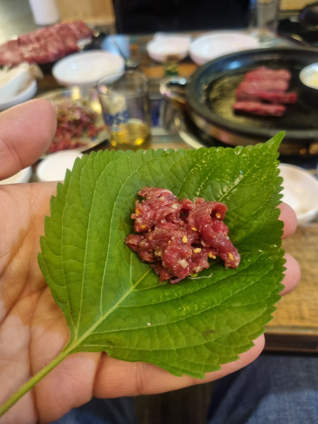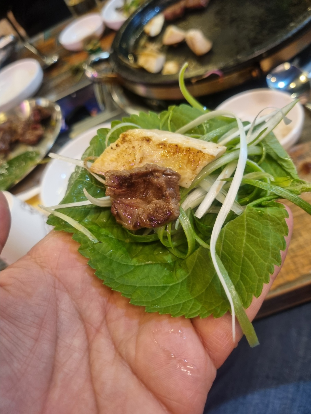 이렇게 깻잎에 쌈도 한번 싸 먹어보고 ㅋㅋㅋ