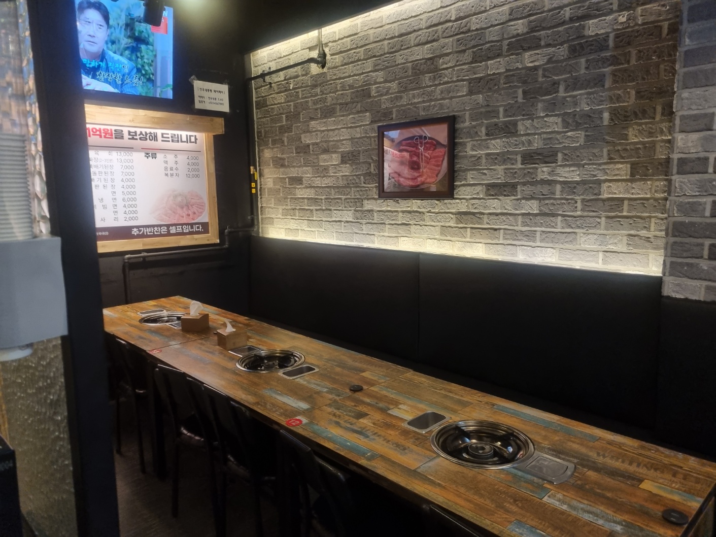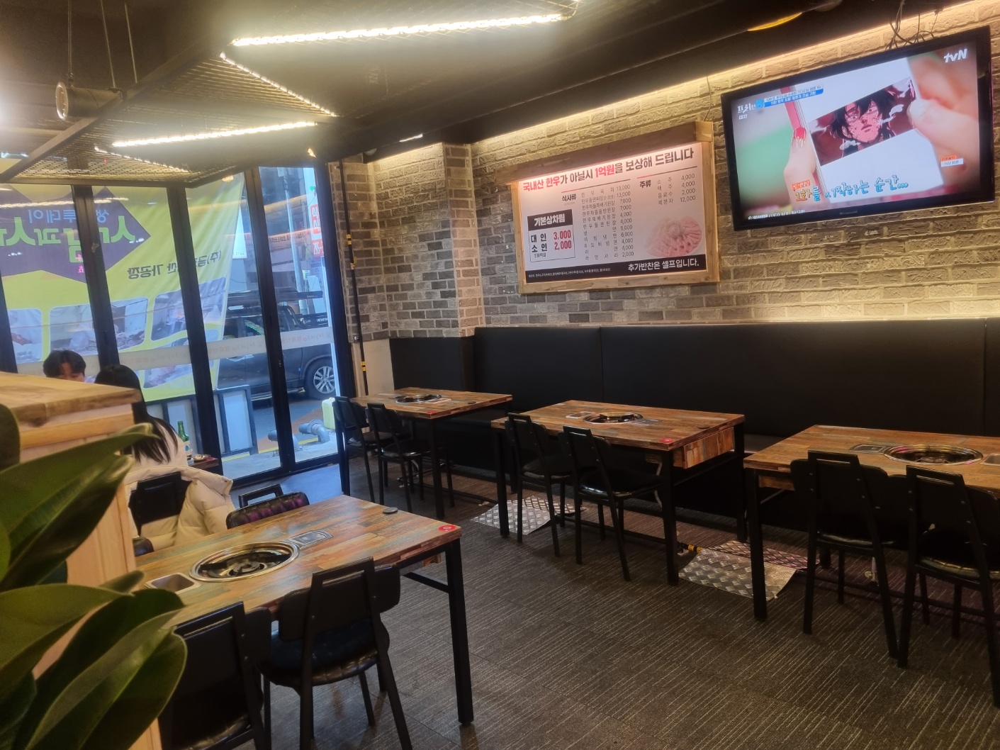 왼쪽에는 2-4인석이 있고 오른쪽에는 단체석이 있습니다.