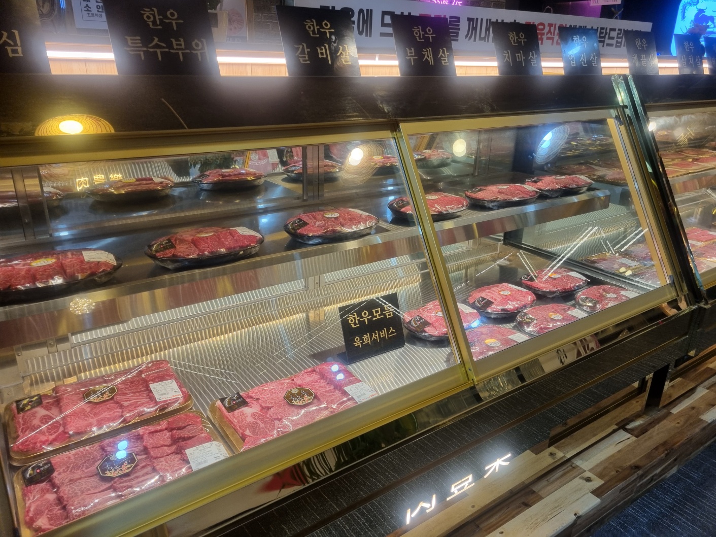 가게 입구로 들어오면 싱싱하고 최고급인 한우가 배열되어 있다.