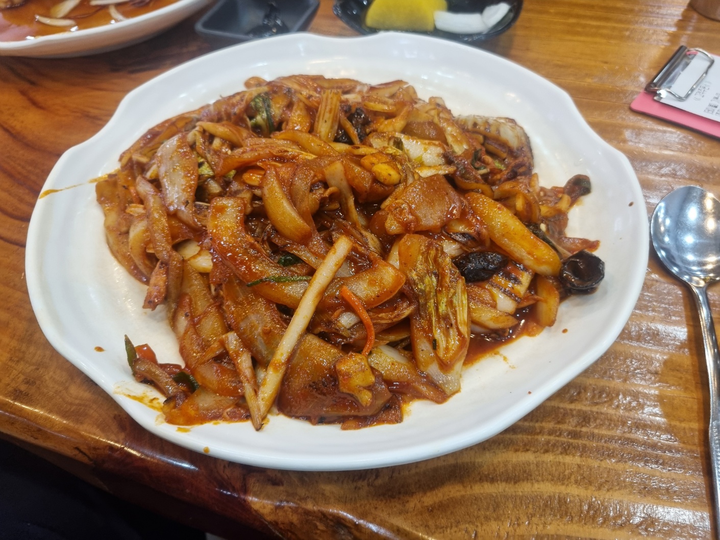 우리는 야끼우동 2개와 미니탕수육을 주문했다.