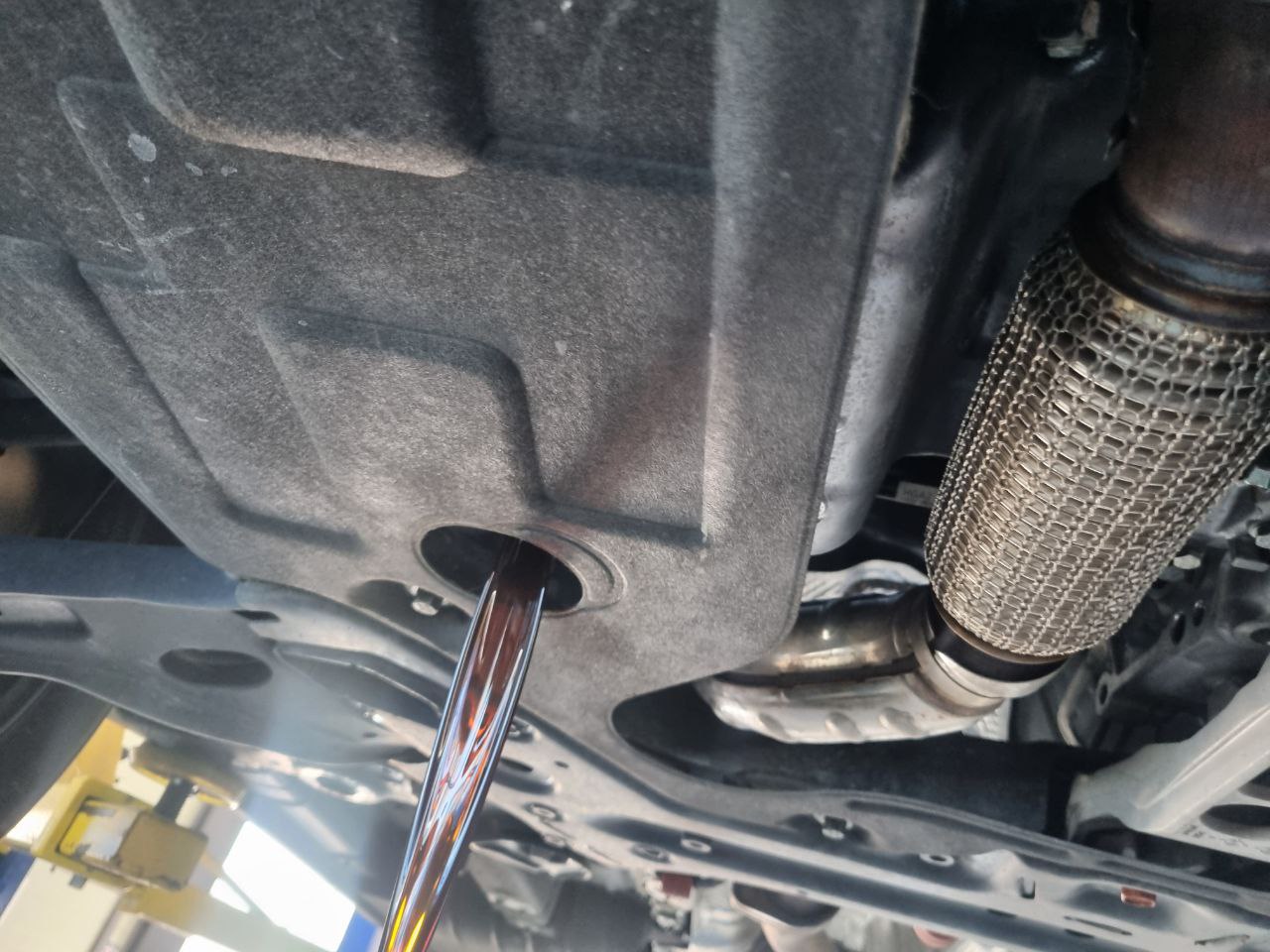 폐오일이 완전히 빠지고 나서 오일주입구를 볼트 잠그는것을 추천한다.